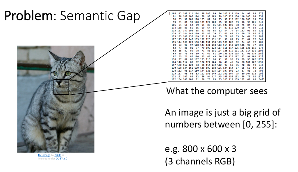 컴퓨터는 사람처럼 이미 많은 데이터를 학습하고, 새로운 이미지가 들어오면 사진에서와 같이 네모를 만들어 이미지를 픽셀단위로 스캔하여 컴퓨터가 알 수 있는 숫자로 조합하여 그림을 인식합니다. 각각의 부분을 조합하여 아~ 이거는 고양이구나! 이렇게 이야기 해주는 거죠!
