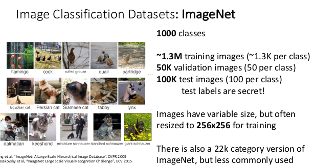CIFAR10, CIFAR100, ImageNet 등과 같이 많은 이미지와 label이 있는 데이터 셋들이 있습니다.